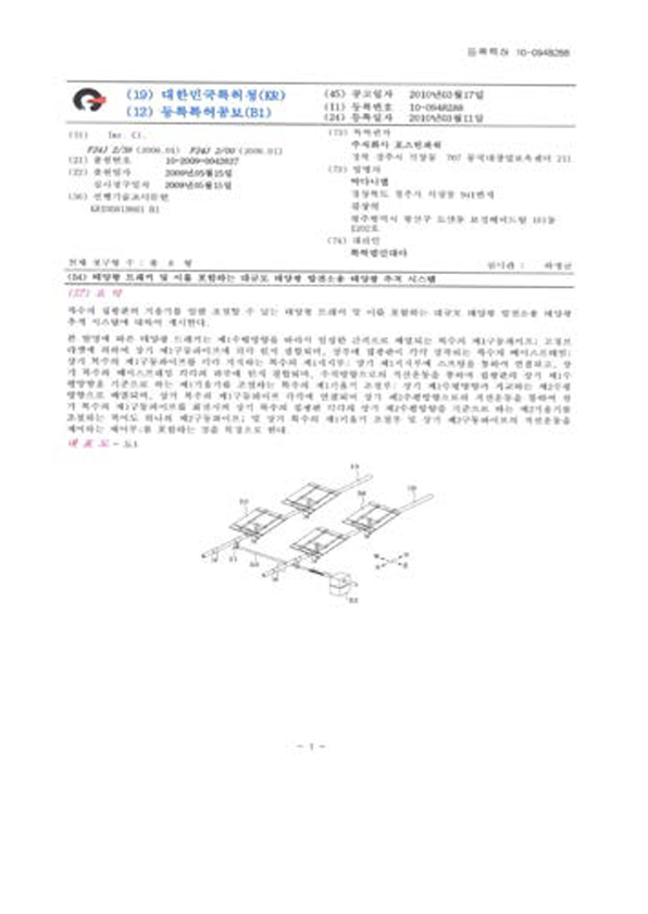 - 04태양광 트래커 및 이를 포함하는 대규모 태양광 발전소용 태양광 추적 시스템 (특허 10-0948288(발명))